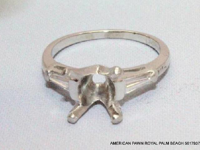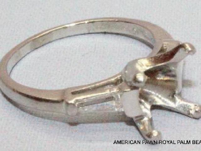 تیفانی سبک حلقه نامزدی تنظیم با 2 باگت الماس (با کیفیت عالی و رنگ). اندازه حلقه 5.5 ایالات متحده. تنظیم مناسب خواهد شد 2 قیراط به 2.5 قیراط دور الماس.