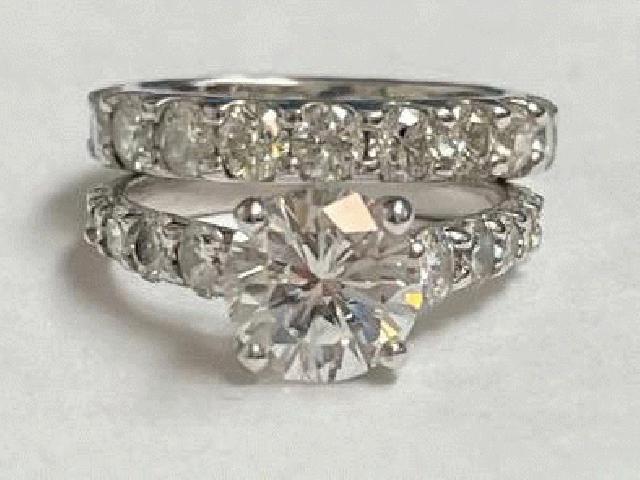 3.ct الماس حلقه عروسی 14k طلای سفید